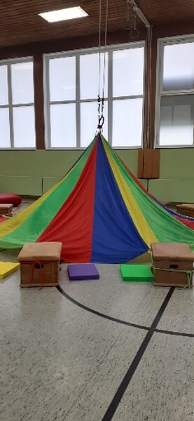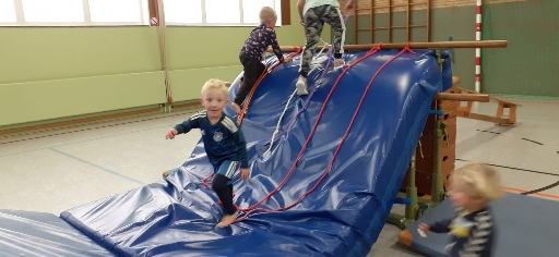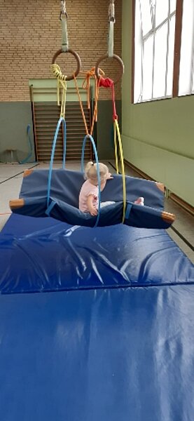 Beim Eltern-Kind-Turnen können die Eltern ihre Kinder mit uns zusammen spielerisch an das Laufen, Balancieren und vor allem an den Kontakt anderer Kinder gewöhnen.